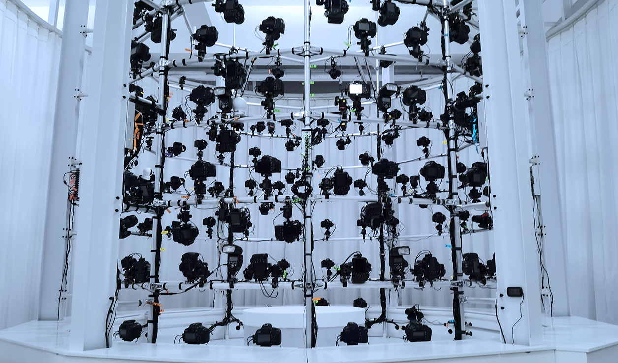 以美目前拥有200台单反相机阵列拍摄系统,采用独家开发的同步系统,可以做到高速动态三维数据采集。通过运算获得图片的深度信息,将平面的图像转化为三维图像,不仅能够获得高精度模型,还能获得高精度纹理信息。Imagery3d人像拍摄系统已经改进了三个版本,目前仍在开发扩展中。